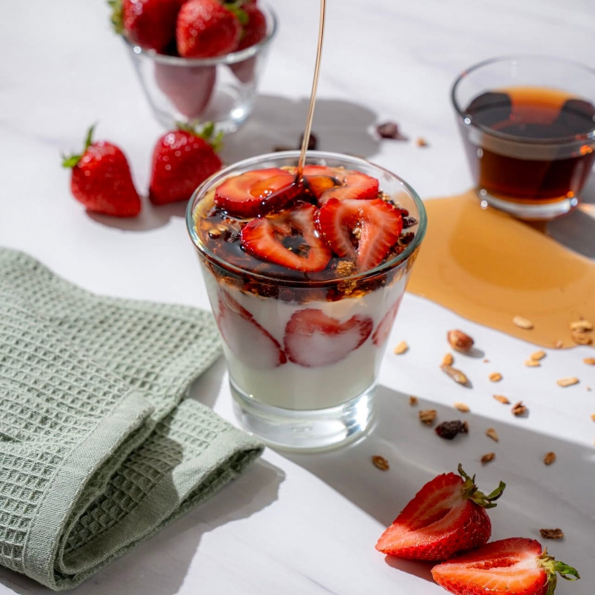 The glass from which the cup is made was carefully selected to combine durability, high transparency, and ease of use, so that it will blend into any table and kitchen style.